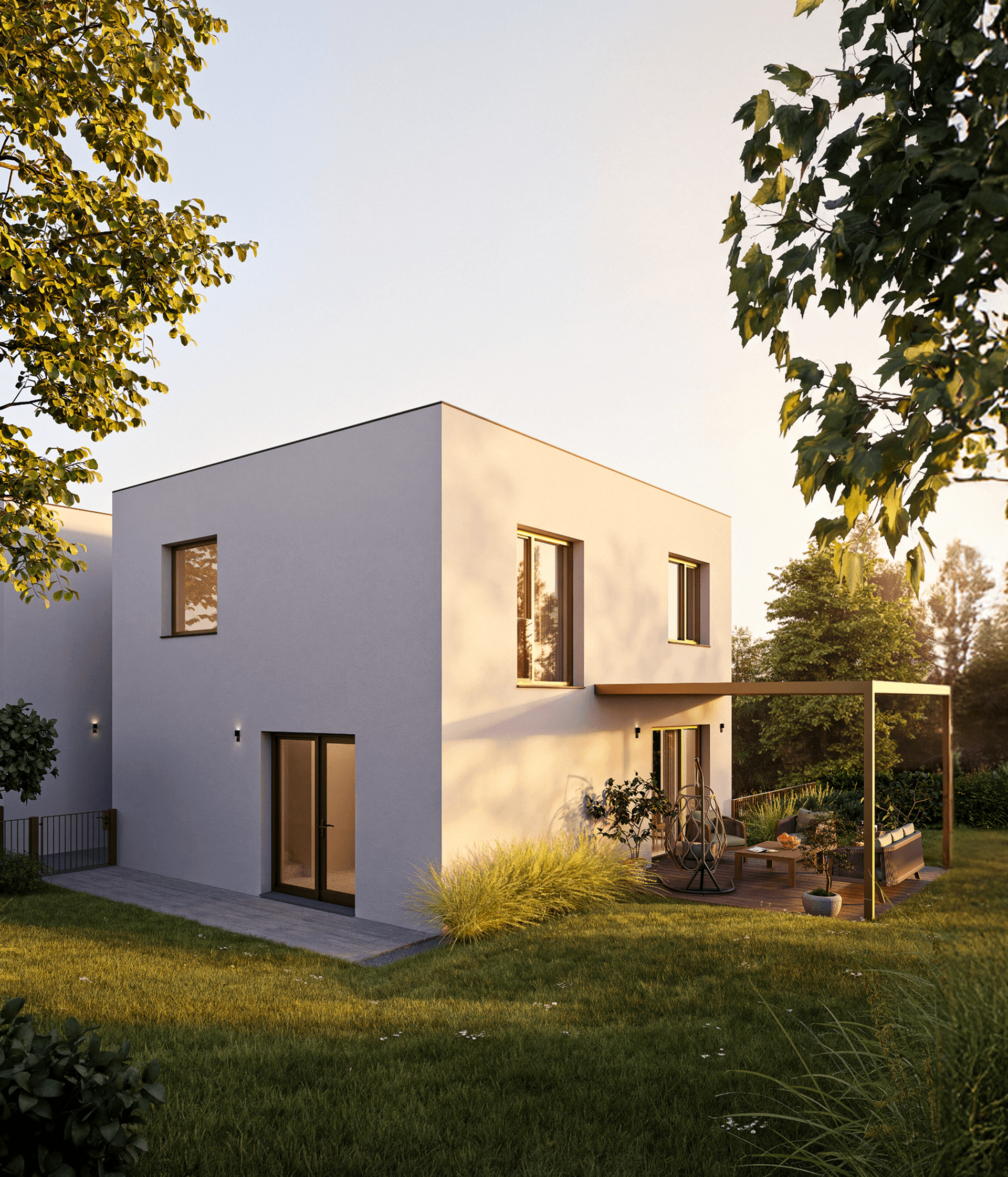 Nadčasová architektura, soukromí a flexibilní přízemí pro apartmán, podnikání, wellness či privátní fitness.
