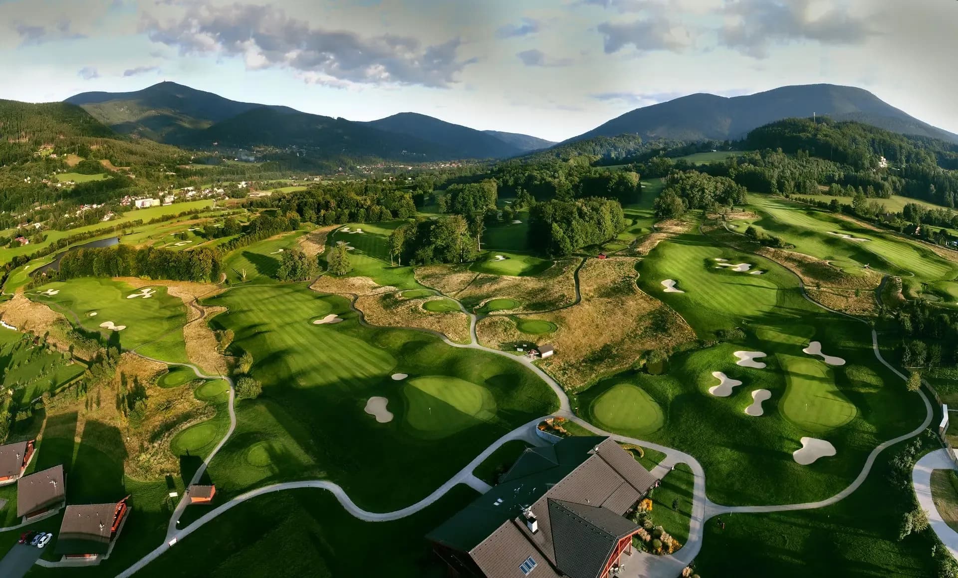 Golfové hřiště s krásným výhledem do okolní krajiny, ideální pro aktivní odpočinek.