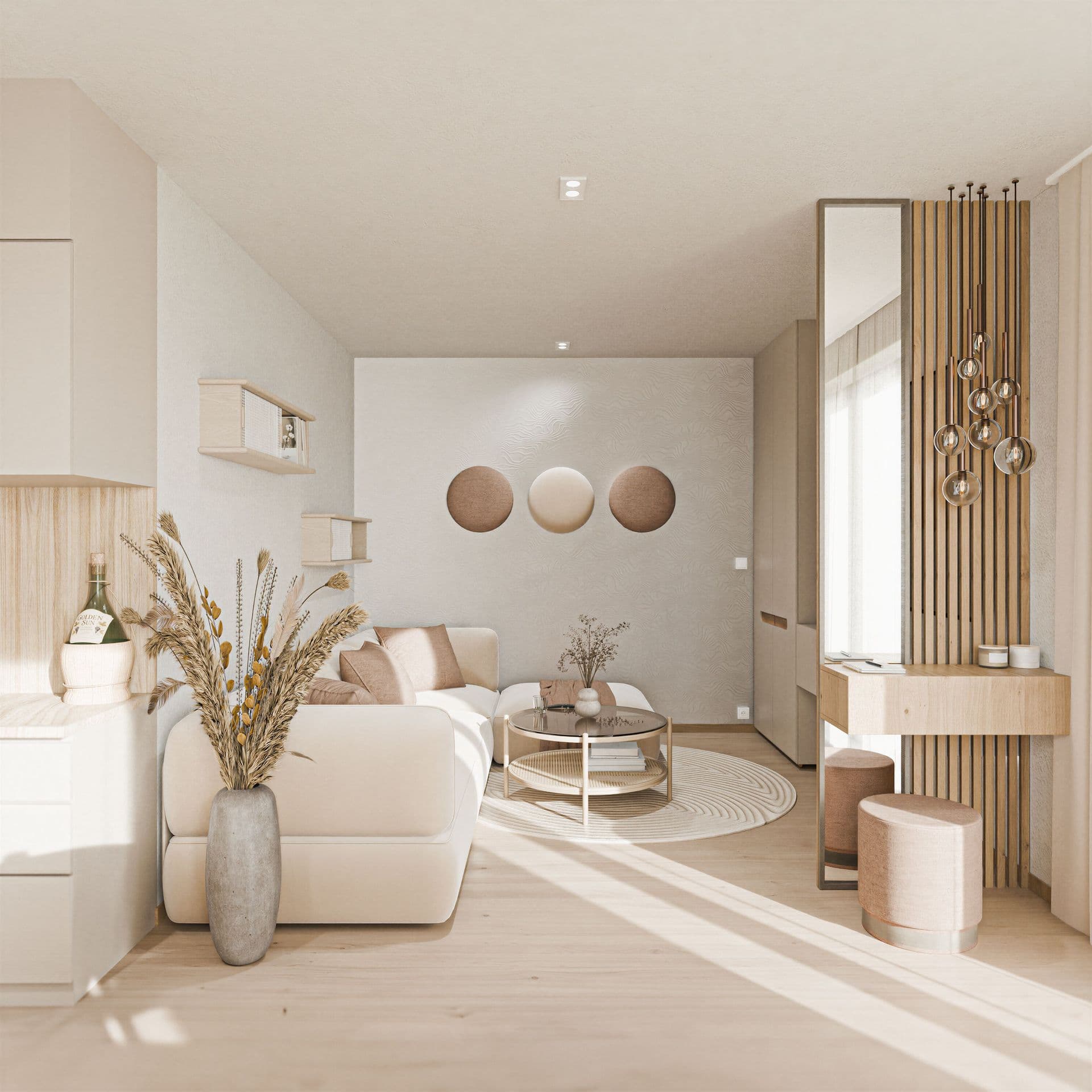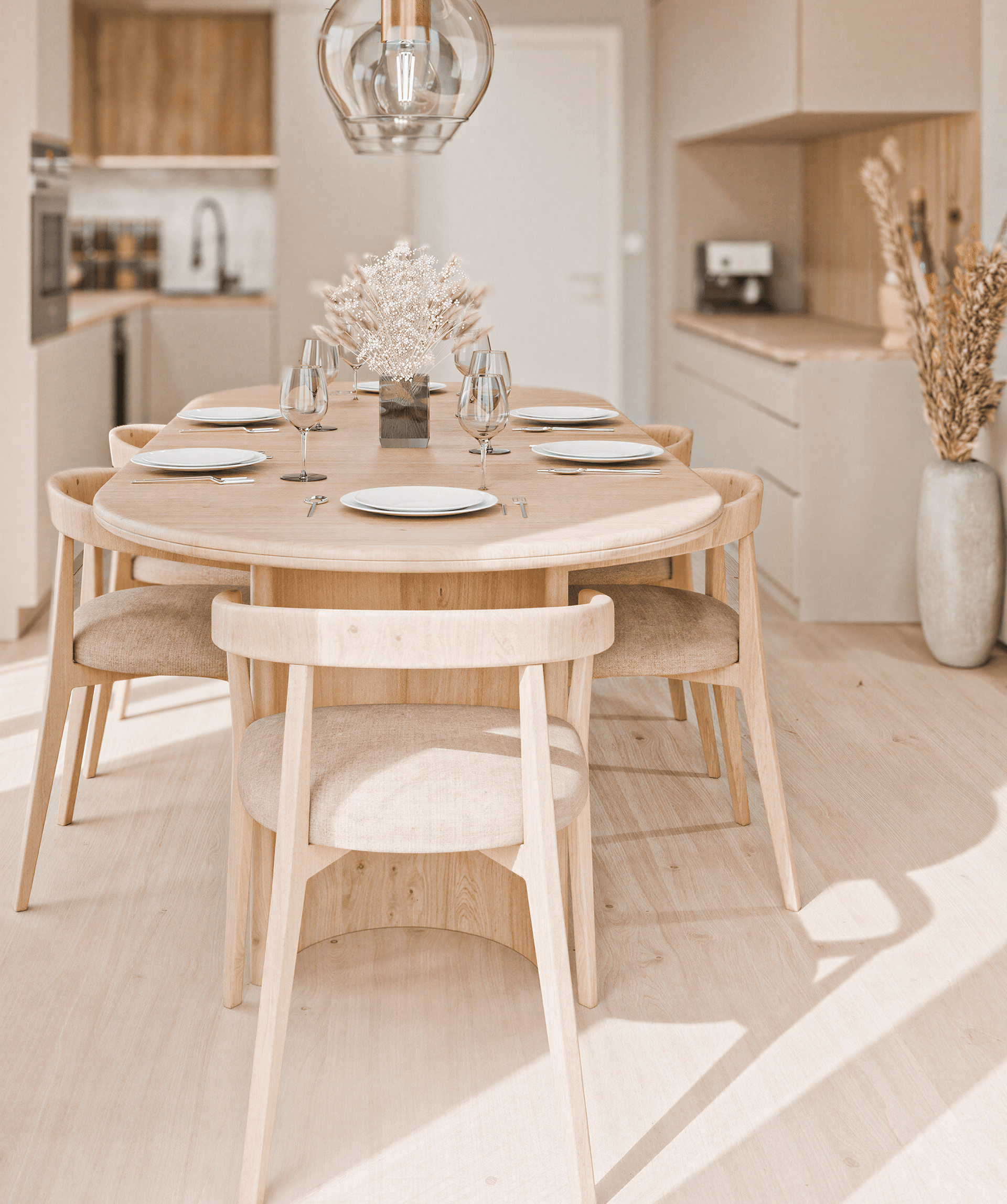 V interiéru jsou navrženy moderní vinylové podlahy, které spojují nadčasový vzhled, vysokou odolnost a snadnou každodenní údržbu. Díky pečlivě zvolenému dekoru působí prostor čistě, svěže a přirozeně, a zároveň nabízí praktické řešení pro pohodlný rodinný život.