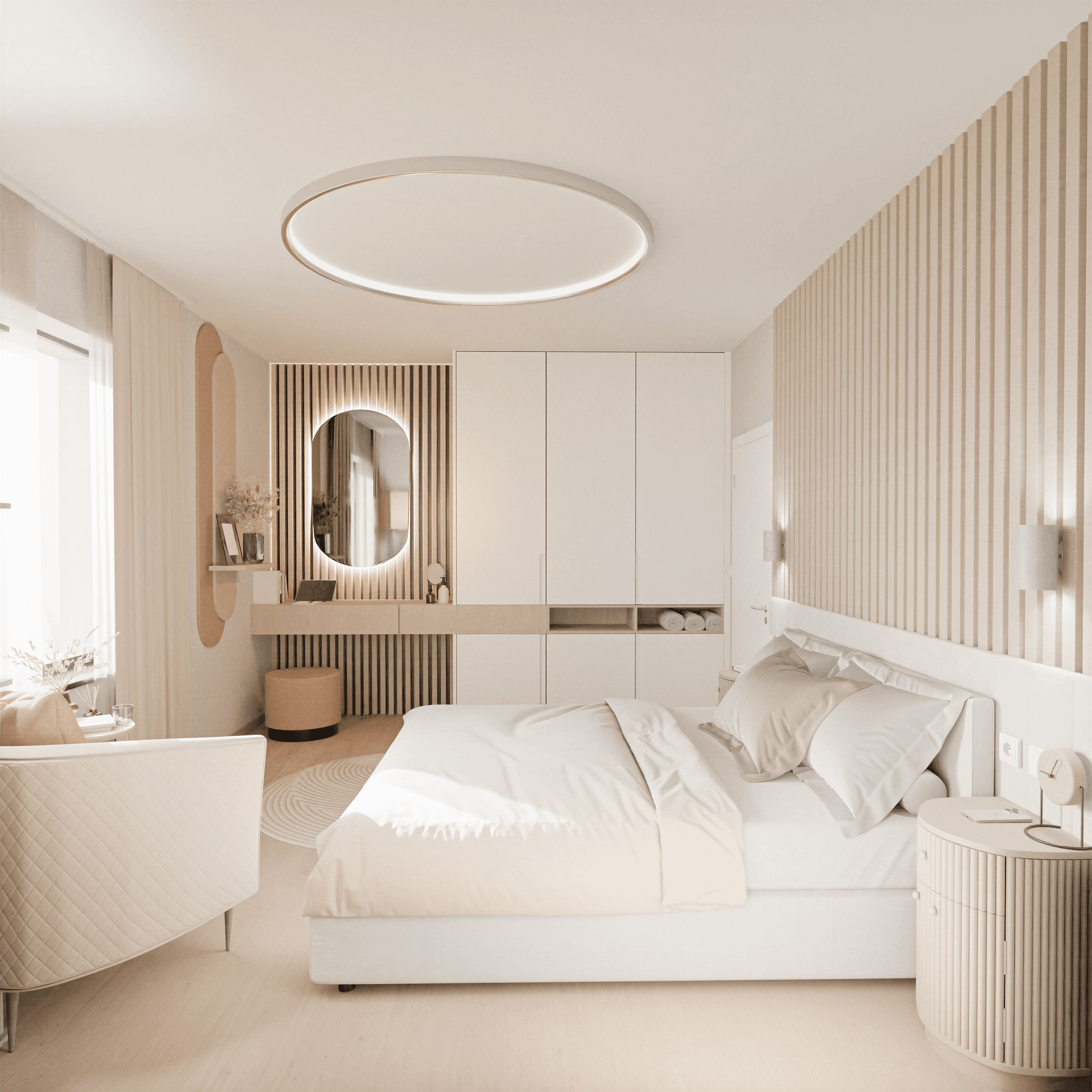 Flexibilní prostor lze upravit na plnohodnotný apartmán pro rodiče, dospívající děti nebo dlouhodobé hosty. Každý tak může mít své soukromí a vlastní zázemí.